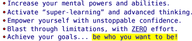 Learn new skills at lightning speeds — absorb facts like a cranial sponge, pick-up information at rapid speeds, understand new ideas and concepts faster than ever. |